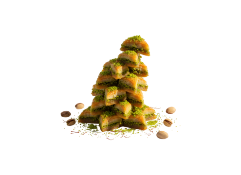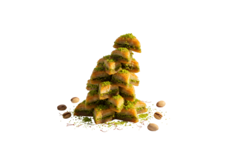 Turkish Ramadan dessert Baklava, isolated on a white background. Creative shot.