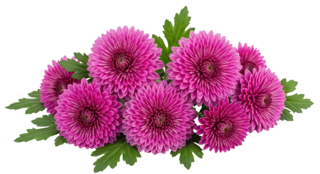Vibrant orange chrysanthemum flowers blooming beautifully in a terracotta pot against a transparent background