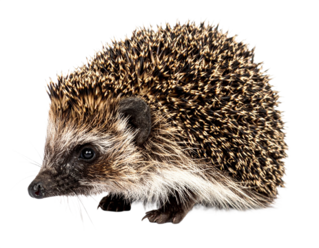 Armored armadillo, two tabby kittens, and golden retriever puppy sitting side by side isolated on white, perfect for pet and wildlife themes