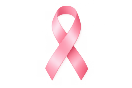 Pink ribbon symbolizing breast cancer awareness, supporting health, hope, and medical research on transparent background