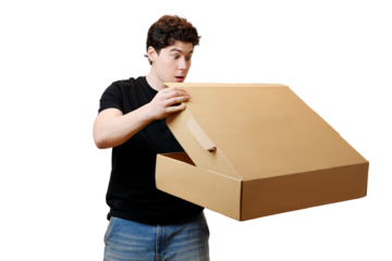 Man holding large cardboard box transparent background