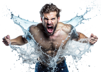 Water splash  rebellious man isolated on white background