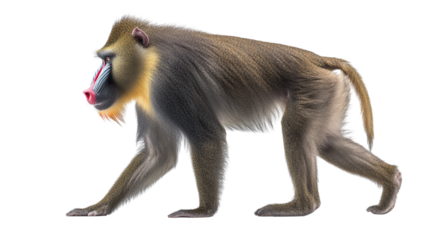 Colorful mandrill monkey isolated PNG, primate with vibrant face markings on transparent background for wildlife and conservation projects