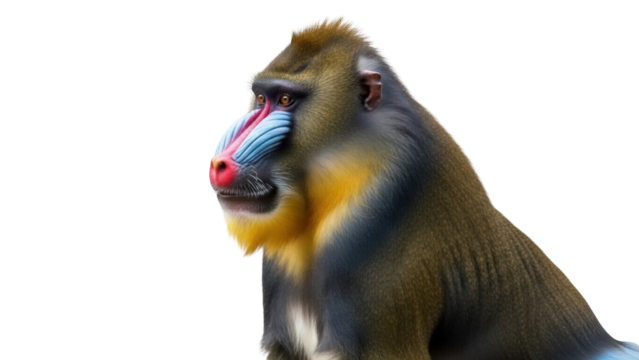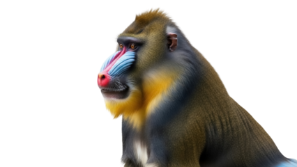 mandrill animal white background large primate with colorful face and rear native to African forests close-up wild monkey species transparent background