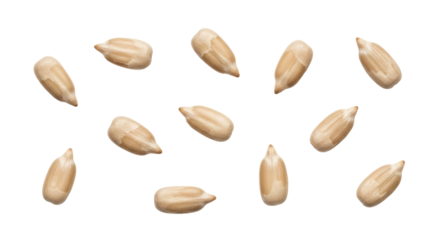 Pile of shelled sunflower seeds isolated PNG, healthy snack food ingredient on transparent background for cooking and nutrition