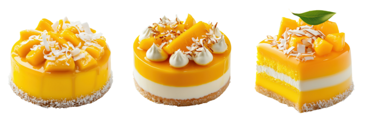 Delicious tropical mango cakes topped with coconut Isolated on Transparent Background