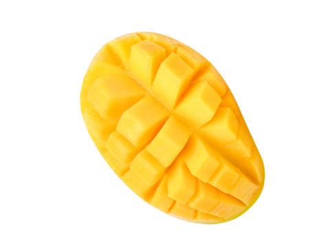 Fresh yellow mango slice on transparent png. Top view..