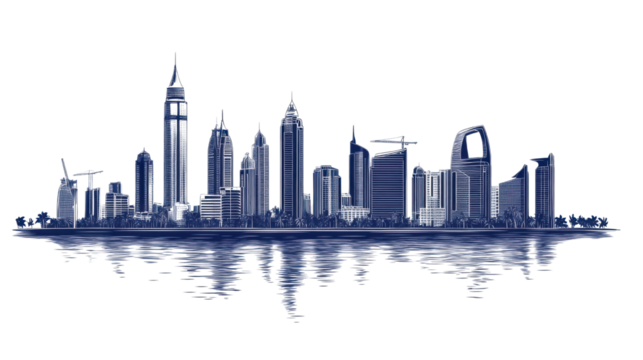 Modern Cityscape Buildings Isolated on Transparent Background for Urban Design Use