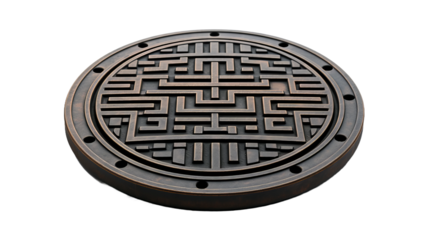 Rusty Metal Sewer Manhole Cover with Ornate Design Transparent