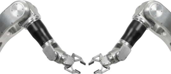 Modern industrial robotic arm manipulator used in automated manufacturing technology and engineering isolated PNG with Transparent Background