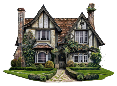 abandoned dilapidated house mansion for halloween isolated on a transparent background