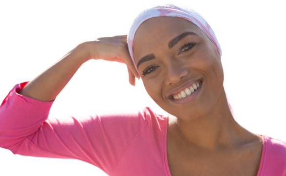 Silhouette of woman holding scarf, transparent background, sporty pose