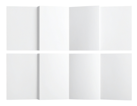 Blank white paper folded in eight sections, map or brochure mockup Isolated on transparent or white, Cut out