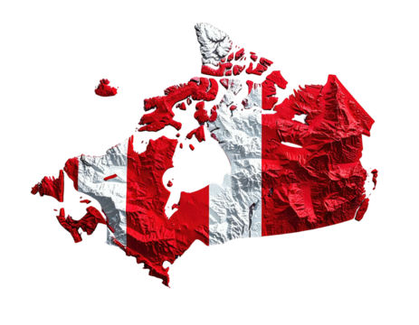 3D rendered outline of a North American nation, the flag's design overlaid on the topography
