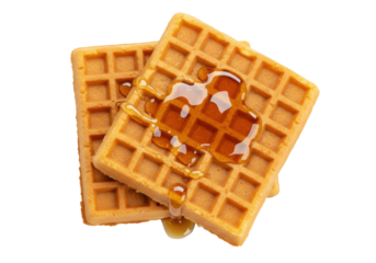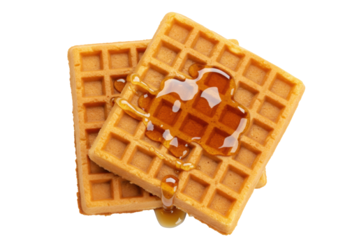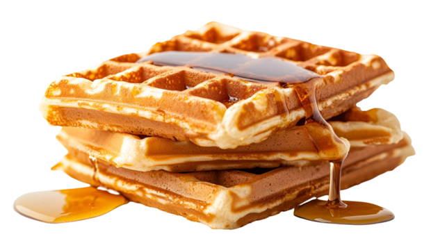 Golden waffles with maple syrup isolated on a clean backdrop, breakfast treat for a sweet start to the day
