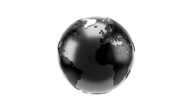 Golden Earth globe with detailed continents and reflective surface world planet isolated on a transparent background