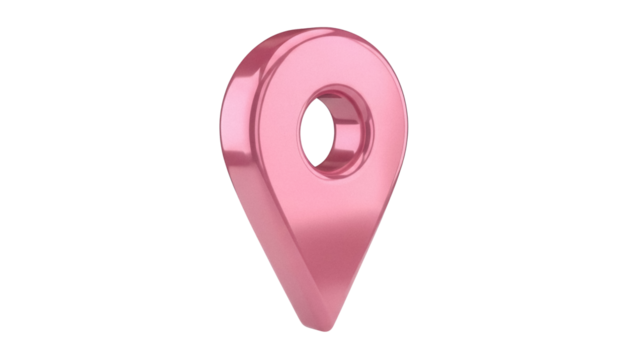 Shiny pink map pointer isolated PNG on transparent background, location pin icon for navigation and travel apps