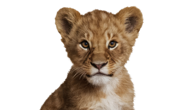 a lion cub isolated on a white background.
