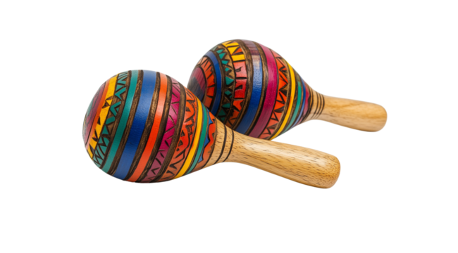 Vibrant, hand-painted maracas ready to bring lively rhythm and festive fun to any music or celebration project