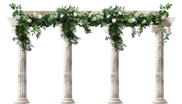 Elegant architectural pillars create stunning visual with intricate designs and arches that evoke sense of grandeur and history