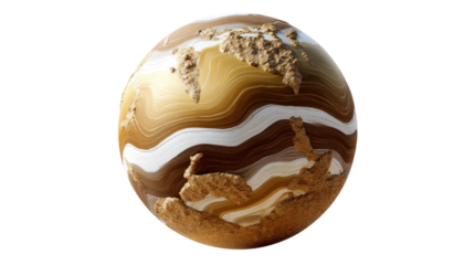 Artistic blue marble globe with gold detailing, background isolated on a Transparent background, PNG file.