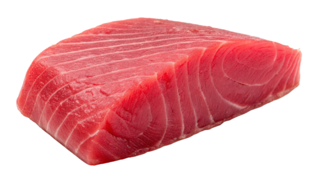Raw salmon fillet with marbling on transparent background