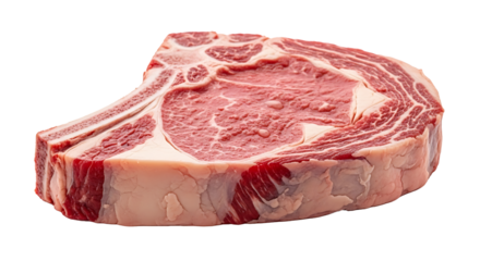 Exquisite prime rib steak cut with marbled fat on transparent background