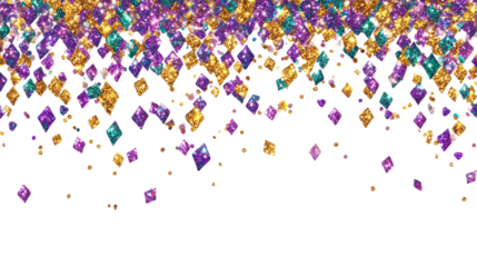 Glittering harlequin pattern with Mardi Gras colors isolated on white background