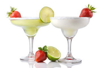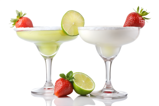Two strawberry margaritas isolated on transparent background