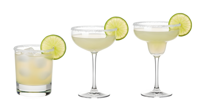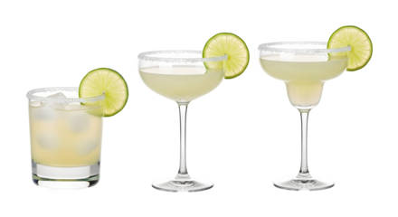 Collection of margarita cocktail tequila cutout clipping path png isolated on white or transparent background