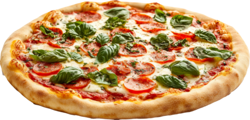 Delicious homemade margherita pizza with fresh basil leaves on a white background isolated on transparent background