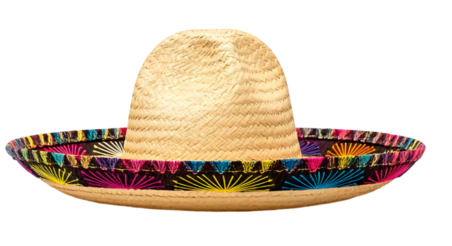 Colorful Mexican sombrero hat featuring vibrant patterns and textures, perfect for cultural celebrations or festive occasions, isolated on white background for clear visibility