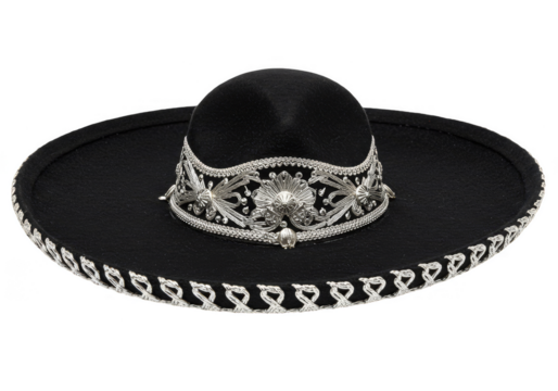 Isolated Traditional Black Silver Mariachi Sombrero Hat Transparent