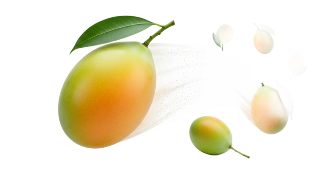 Vibrant and juicy Marian plums, also known as mango plums or maprang, captured in dynamic motion, showcasing their fresh appeal and tropical sweetness against a clean white background