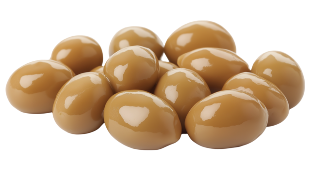 Shiny brown olives with smooth skins arranged on a clean white backgroun or transparent png