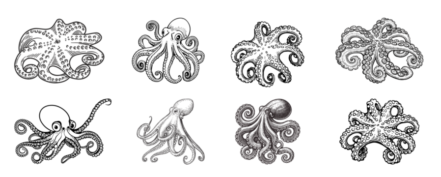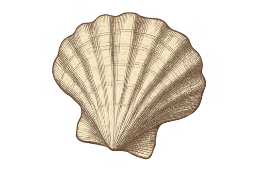 Oyster shell drawing in monochrome style, marine fauna, cut out transparent