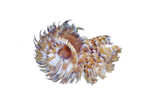 Fósil de amonita en piedra, aislado sobre blanco. Fósiles del Jurásico. Concepto de arqueología y paleontología.