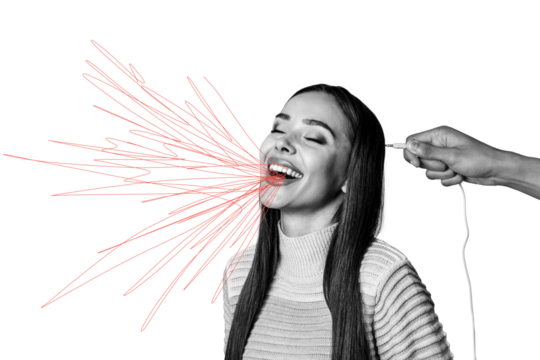 Composite trend artwork sketch image collage of monochrome miniature young attractive lady talk speech happy relax hand hold wire charge