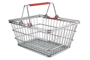 Shopping basket for supermarket products. Shop equipment. Realistic market bag. Multi-angle of metal shiny basket. Png transparency