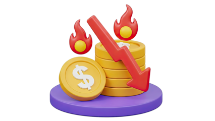 Financial Decline: Downward Arrow, Coins, and Dollar Sign