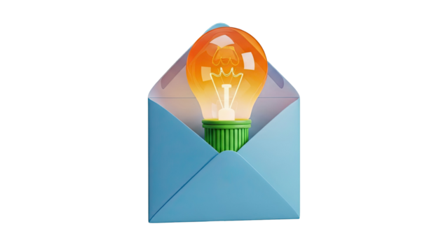 Lightbulb in Blue Envelope: Symbol of New Ideas and Innovation