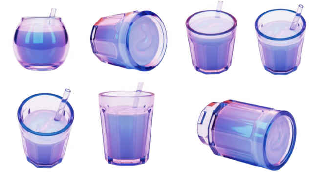 Various angles of refreshing drinks on a white background for marketing and product promotion