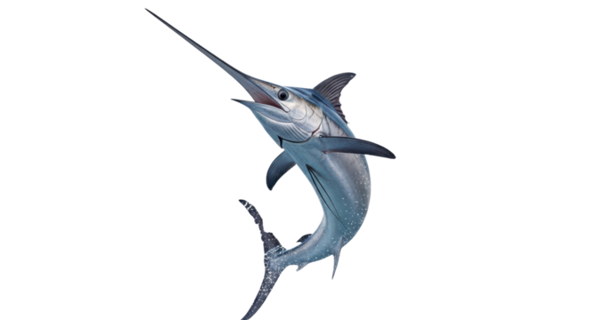 A majestic blue marlin gliding gracefully through vibrant ocean waters during a sunny day isolated on transparent background