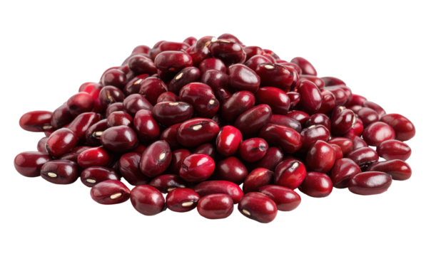 Heap of red kidney beans with a green leaf, isolated on transparent background