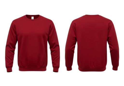 Men's Blank Maroon Crewneck Sweatshirt, Front and Back View, Isolated on transparent background
