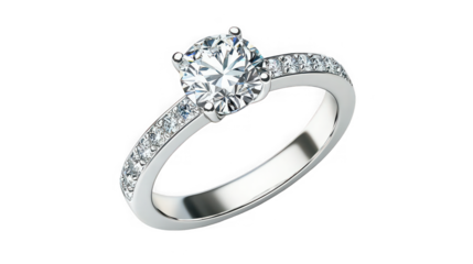Luxury Diamond Engagement Ring in White Gold Isolated on Transparent Background