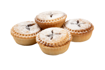Enchanted Miniature Delights: Four Marvellous Pies With a Dusting of Powdered Sugar on a White or Clear Surface PNG Transparent Background.