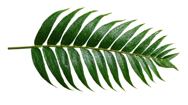 Green fern leaf isolated on a white background, showcasing its intricate structure and vibrant color.