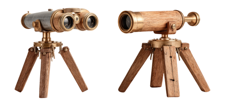 Vintage Telescope on Wooden Tripod with Transparent Background for Illustrative Use