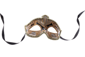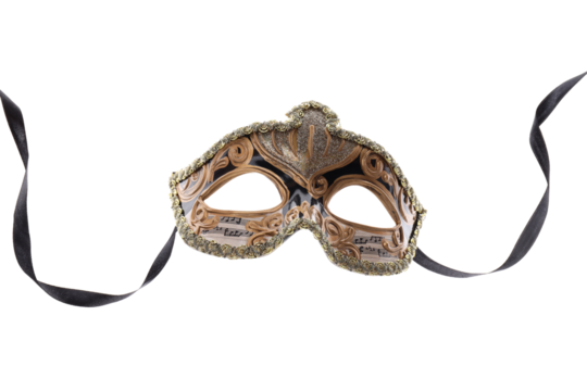 Venetian carnival mask black color isolated Transparent background, PNG.